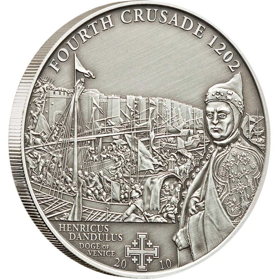 So with trade continuing with the ‘enemy’, Venice also won the tender to supply the Christian military, being the ideal staging port for the 4th Crusade. They built horse transports to carry 4 500 horses and 9 000 squires. 4 500 knights and 20 000 foot soldiers were embarked on the port’s ships. The thoroughness of the Venetian workmen also provided provisions for this navy, both men and horses for nine months.The bill for this was 94 000 marks and they threw in 50 armed galleys, free of charge, as long as this alliance lasted,with the condition that the Venetians receive half of all conquests that the force make by way of territory or money, land or sea.